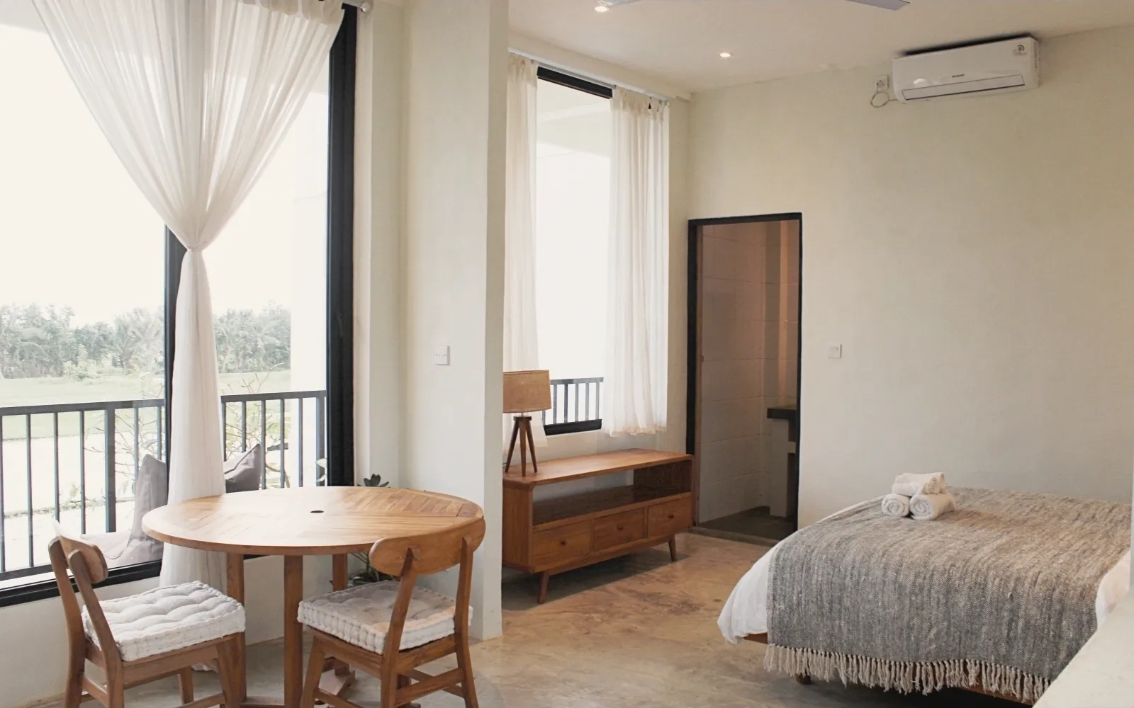 Cozy and compact studio room, yet the big windows make it feel much bigger than the space you are actually in. Perfect for solo travellers who want a calm, private base in the heart of Kedungu.