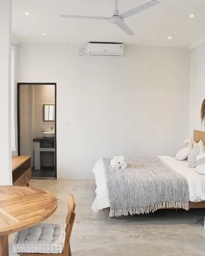 At Los Hobos, our rooms are designed to offer a calm and comfortable living experience in the heart of Bali. Each space is thoughtfully created with simplicity, light, and functionality in mind — a place where you can slow down, recharge, and feel at home from the moment you arrive.